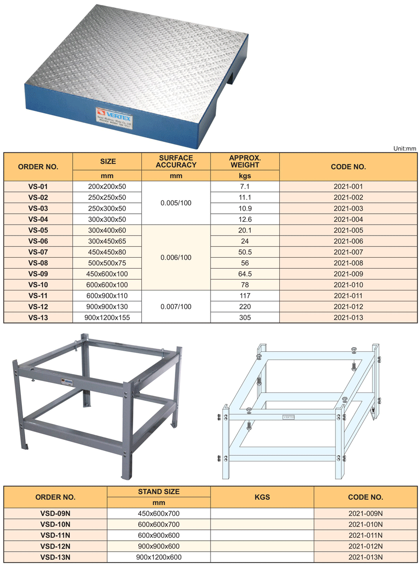 – Model chân bàn Máp tương ứng cho bàn Máp từ VS-09 ~ VS-13 tra theo catalogue.