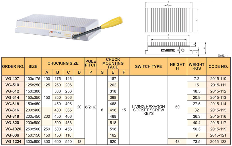 – Bàn từ VG của VERTEX thích hợp sử dụng cho máy mài phẳng.