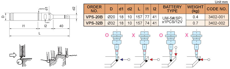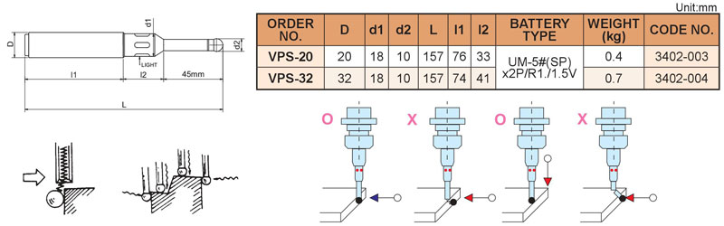 – Cảm biến tiếp xúc VPS-20B, VPS-32B không cần quay khi đo.
