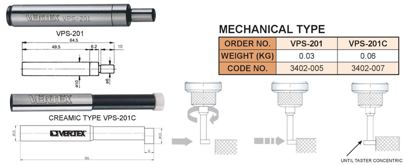 4. Cảm biến tiếp xúc kiểu đầu trượt VPS-201, VPS-201C của VERTEX:
