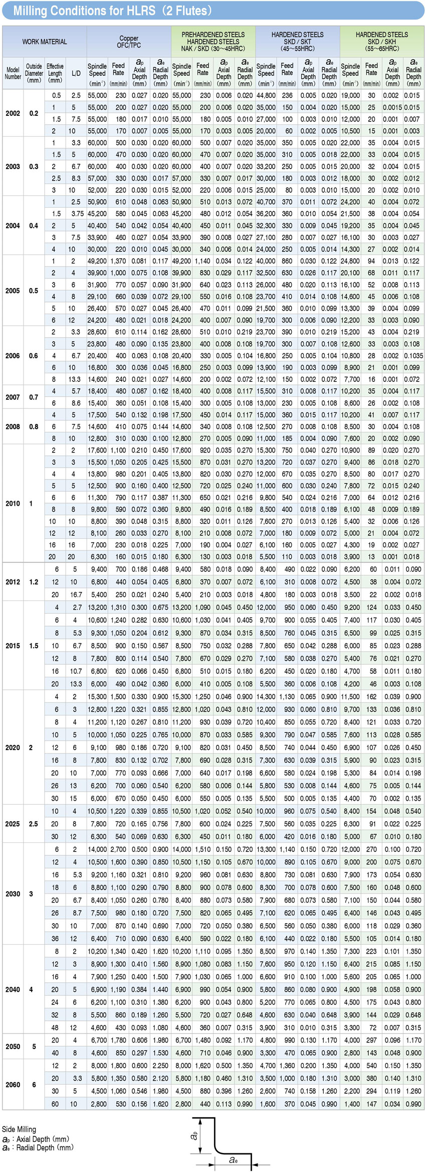 * Chế độ cắt dao phay góc cổ dài hợp kim HLRS2000: