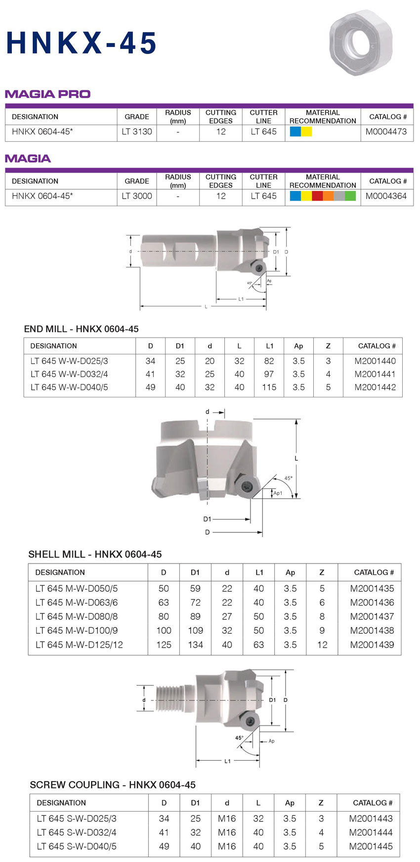 – Sử dụng mảnh dao: HNKX 0604-45 LT 3000; HNKX 0604-45 LT 3130.