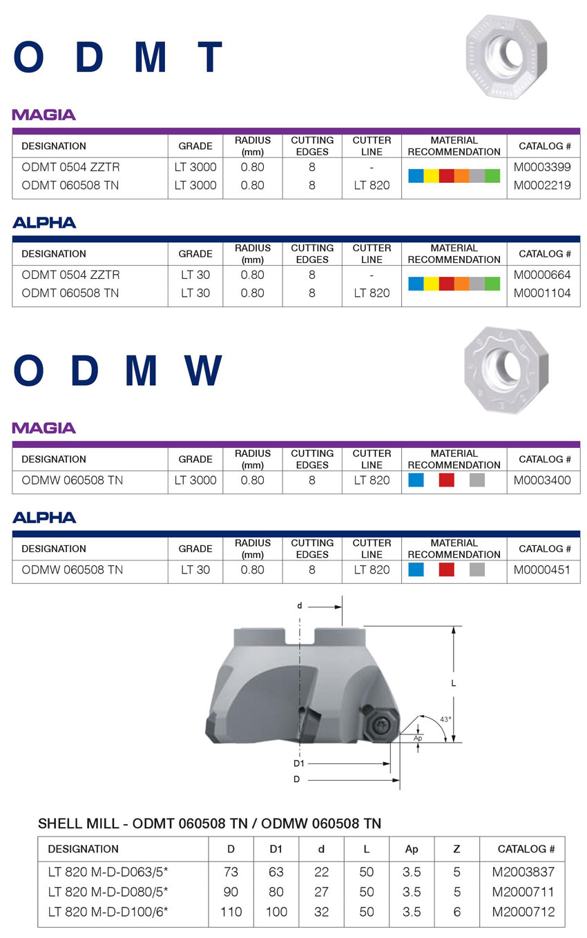 – Sử dụng mảnh dao: ODMT 0504; ODMT 060508; ODMW 050408; ODMW 060508.