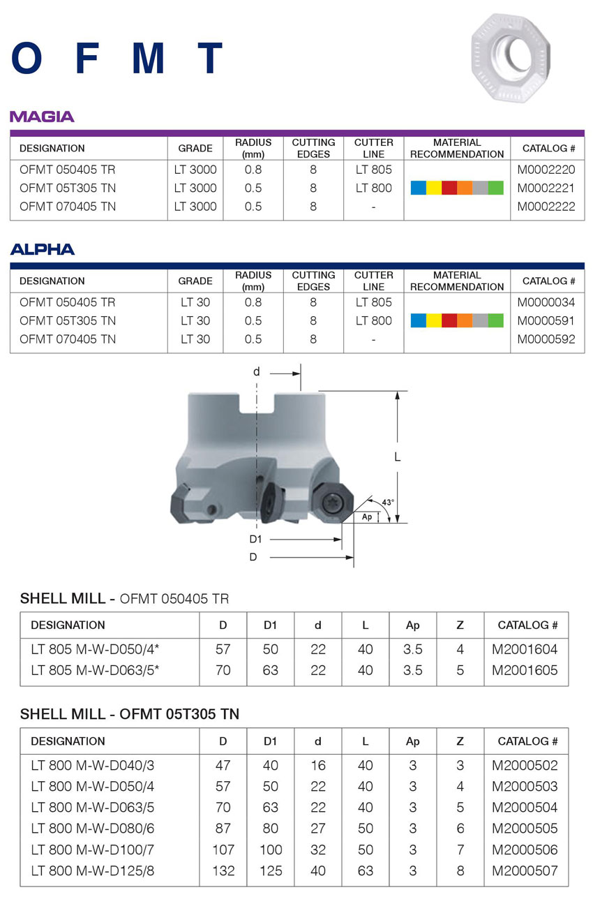 – Lớp phủ “LT 30 (Alpha); LT 3000 (Magia)” được phủ theo công nghệ PVD và CVD, cho độ cứng cao, chống mài mòn tốt, tuổi bền mảnh dao cao. Lớp phủ LT 3130 (Magia pro) được sử dụng chuyên cho thép và inox với tốc độ cắt cao.