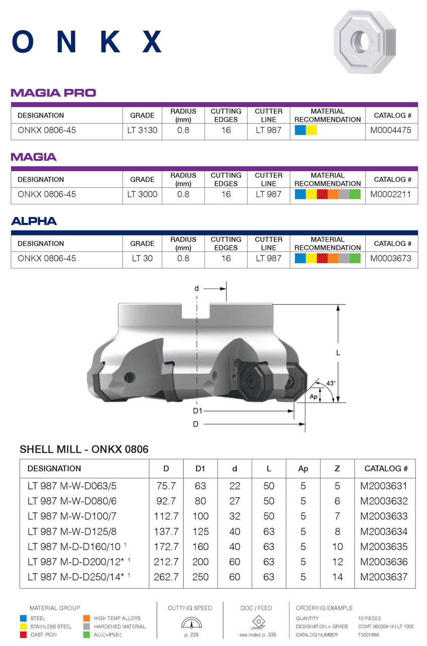 – Sử dụng mảnh dao: ONKX 0604-45.