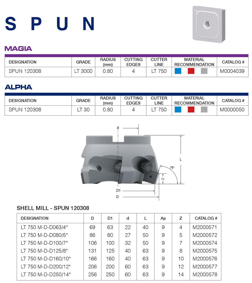 – Sử dụng mảnh dao: SPUN 120308 LT 30; SPUN 120308 LT 3000.