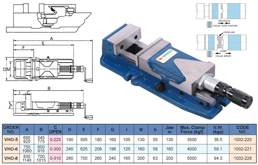 – Ê tô thủy lực VHO có thể chuyển từ kẹp cơ sang kẹp cơ khí và ngược lại dễ dàng.