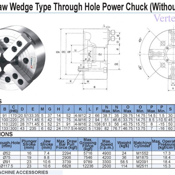 Đặc tính thông số sản phẩm mâm cặp thủy lực Vertex: