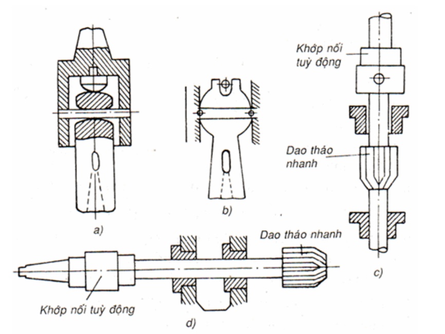 - Dao doa được nối với tuỳ động với trục chính của máy bằng khớp tuỳ động. Lúc này dao hoàn toàn dựa vào lỗ đã có để tự dẫn hướng nên nó khắc phục được nhược điểm của phương pháp trên