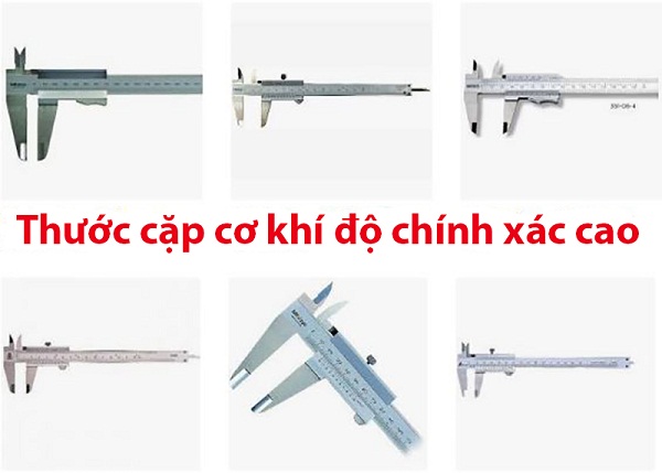 Thước cặp cơ khí đây là một trong những loại dụng cụ đo được sủ dụng rất nhiều trong cơ khí. Đây là loại thước cặp phổ thông kết quả đo được hiển thị thông qua vạch cơ khí. Vật liệu làm bằng thép không gỉ hoặc hợp kim chống mài mòn, chống bám bẩn. Một vài loại thước cặp cơ đặc biệt dùng trong ngành thực phẩm thì bằng sợi tủy tinh. Thước sẽ phân biệt trên thang đo và độ chính xác. Nếu cùng tang đo và độ chính xác chúng sẽ khác nhau về kiểu ngàm kẹp. Ngàm cặp của thước cặp cơ sẽ dài ngắn khác nhau, ngàm đặc biệt có thiết kế riêng. Các thước cặp có ngàm đặc biệt sẽ chuyên dụng cho một số chức năng đo nào đó, thường sẽ là đo rãnh. Thước cặp cơ khí cũng sẽ phân biệt sự khác nhau qua chốt hãm thước hoặc vít chỉnh tinh. Phần lớn các thước căp cơ khí sẽ hãm khóa thước bằng vít. Vài loại khác sẽ khóa tự động bằng nút nhấn- nhả ngay ngón tay thao tác. Chuôi đo sâu của thước cặp cơ khí thông dụng nhất vẫn là chuôi bản dẹt. Trong vài tình huống đặt biệt cần đo sâu của lỗ nhỏ. tròn bạn nên chọn loại chuôi đo dạng trụ tròn, chuôi đo độ sâu chỉ là một tính năng mở rộng cho thước kẹp cơ khí vì thế sẽ mặc định là dẹt.