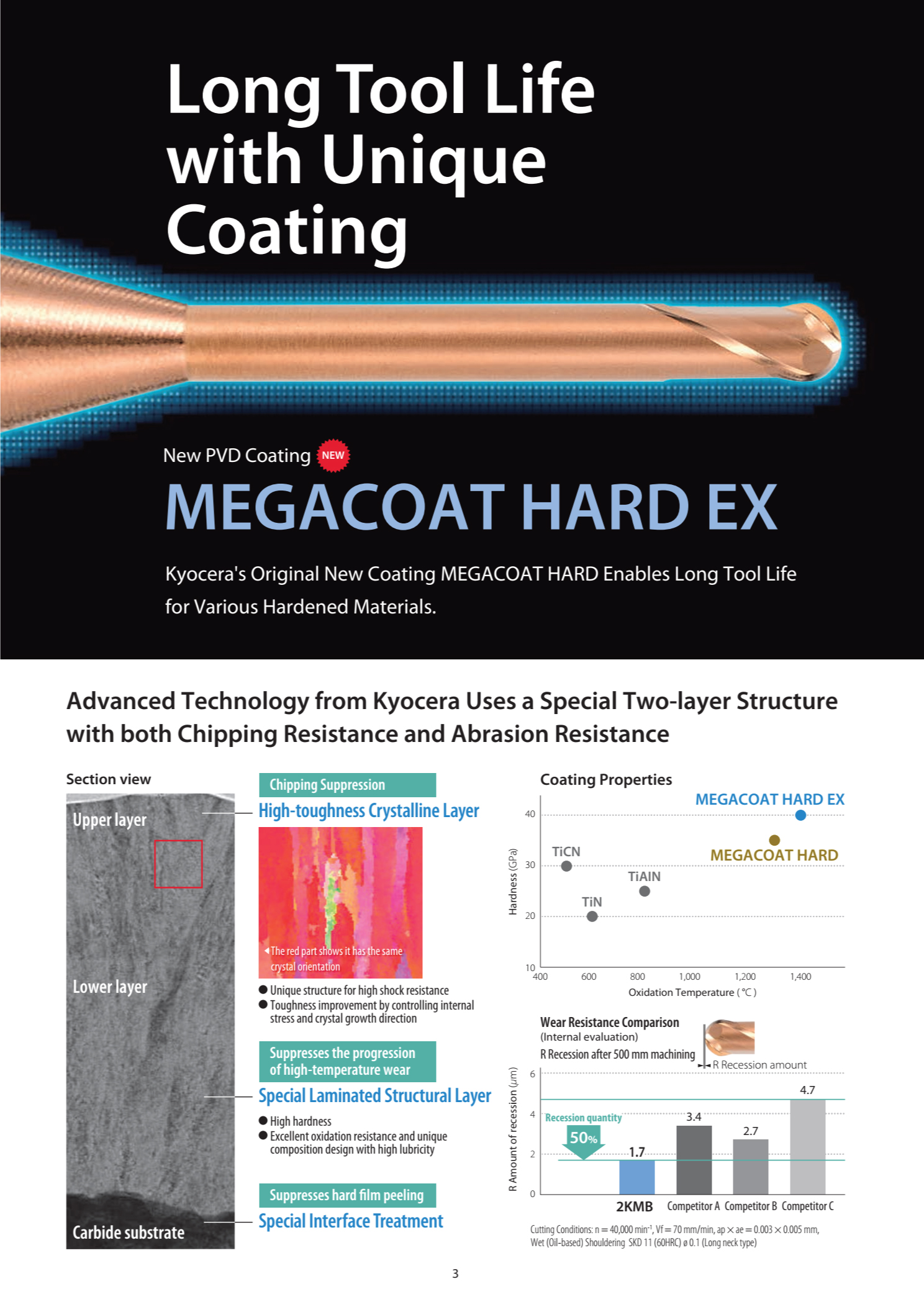 Lớp phủ mới PVD MEGACOAT HARD EX cho phép tuổi thọ dụng cụ lâu dài vượt trội